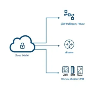 Un Cloud dédié est un espace virtuel dédié hébergé au sein des Datacenters Office Maker. Il permet la mise en œuvre d’une plateforme virtuelle permettant ainsi à l’ensemble de vos VM de communiquer entre elles de manière sécurisée, comme si elles faisaient partie d’un réseau privé d’entreprise (LAN).